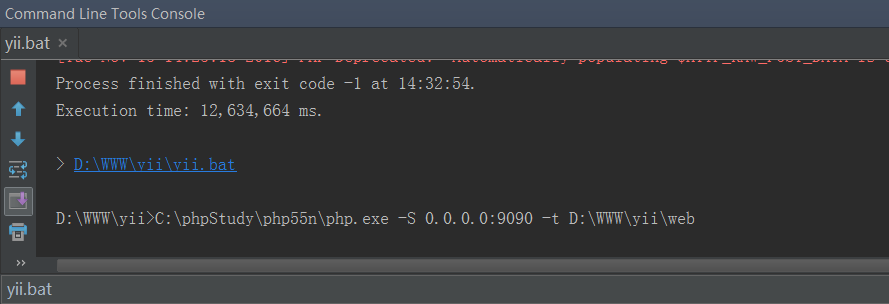 在 phpstorm 中 tools 工具菜单栏位下面运行 yii.bat 然后打开浏览器访问 localhot:9090 不出意外就能看家框架欢迎页面。